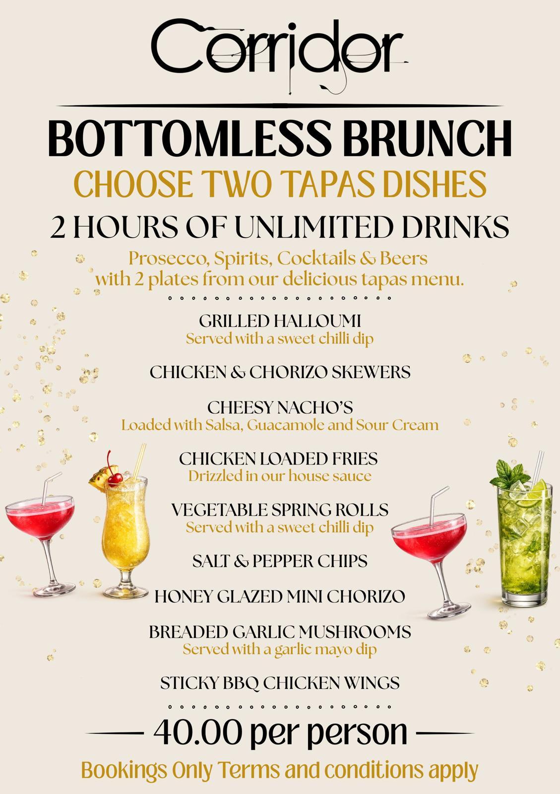 2 hours unlimited drinks with 2 plates from our delicious tapas menu.